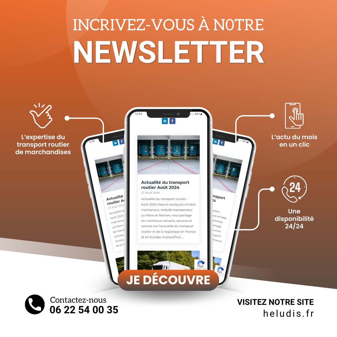En vous inscrivant à notre nouvelle newsletter, soyez averti mensuellement des enjeux du secteur du transport routier en France et à l’international. Mettez-vous à jour en un clic grâce à Heludis, transporteur Rennes / Le Mans.